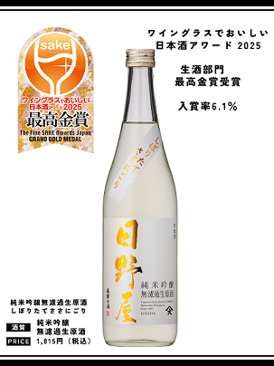 ワイングラスでおいしい日本酒アワード2025 (生酒部門)にて 『純米吟醸無濾過生原酒ささにごり』 が最高金賞を受賞をしました。