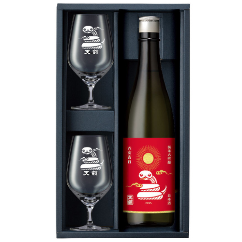 純米大吟醸 干支ラベルとオリジナル酒グラスをセットにした今冬一押しのセットです。